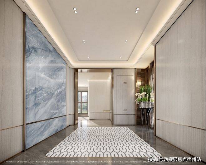 地库入户大堂公区打造,招商臻境同样也极尽匠心,吊顶上采用了具有海派风格的内凹式弧面造型;廊柱腰线以及门边运用奢石点缀,柱子与柱体采用精致的弧形倒角设计,庄重而不失典雅。