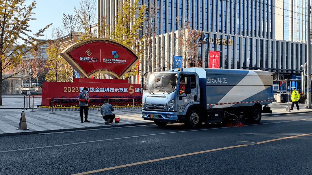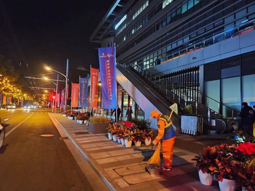 论坛期间,做好市容环境的夜间“守护者”,采用机械+人工联动作业模式,重点对金融街和金科新区周边主要路段进行巡回清扫,发现垃圾及时清理,全方位、无死角美化了论坛周边环境。