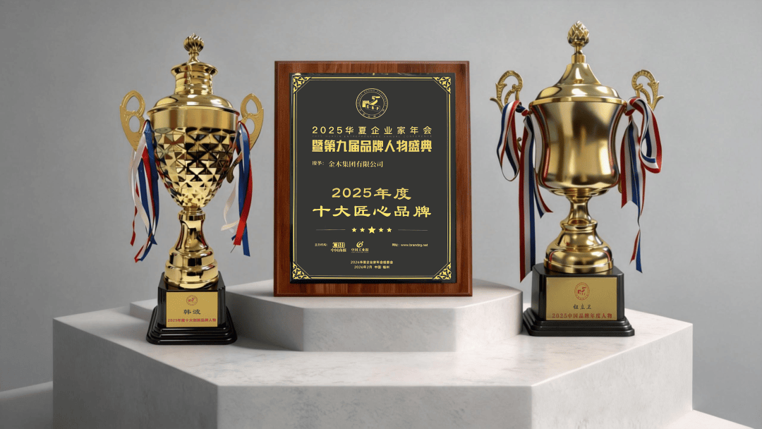 会议期间,大会组委会表彰了在中国经济高质量发展进程中涌现出的领军企业和先进典型。金木集团斩获多项殊荣:董事长钮立卫荣膺“2025中国品牌年度人物”荣誉奖项;高级副总裁韩波获评“2025年度十大创新品牌人物”荣誉称号;金木集团更是斩获 “2025 年度十大匠心品牌”奖项。