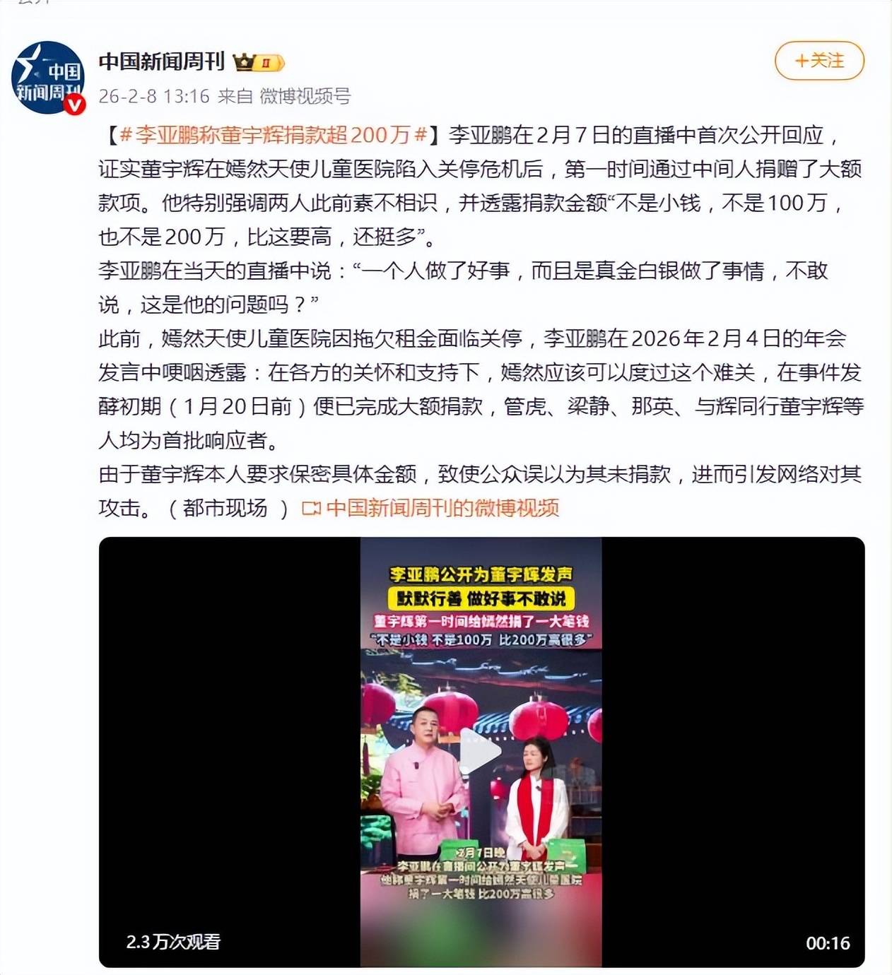 这场风波,源自嫣然天使儿童医院那笔2600万的租金欠款。医院一度面临着关停的巨大压力,李亚鹏在年初的年会上情绪激动、哽咽地感谢了各方的支持,才让公众得知医院的困境终于有了转机。当时,李亚鹏特别提到了一批最先站出来伸出援手的朋友,名单中赫然有与辉同行董宇辉这个名字。然而,问题也正是由此而起——董宇辉方面坚持对具体捐款金额保密,这就导致了外界只看到了名字,却没能看到那笔真金白银的实质性证据。于是,一场围绕董宇辉的舆论风暴迅速蔓延开来,批评声不绝于耳,言辞激烈的质疑包括光说不练、蹭热度不掏钱,甚至有网友指责他未履行社会责任。就在大家对董宇辉发起猛烈炮轰时,李亚鹏终于忍不住,在2月7日的直播中亲自出面,澄清事实并为董宇辉鸣冤。