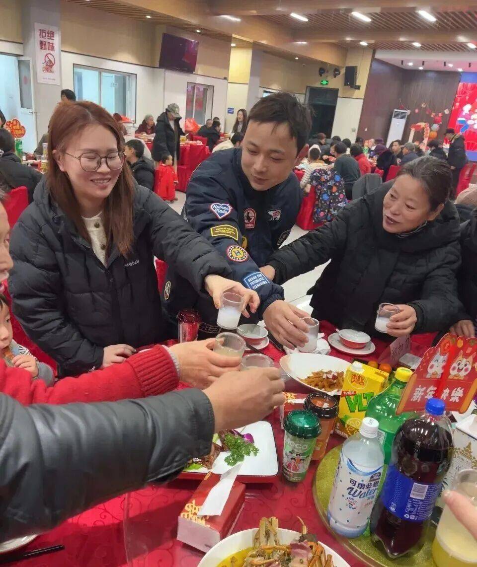 “干杯!祝大家马年吉祥,新年快乐!”2月16日除夕夜,灯火可亲,暖意融融。当晚,黄湾镇四个家宴中心里,近百桌年夜饭同步开席。